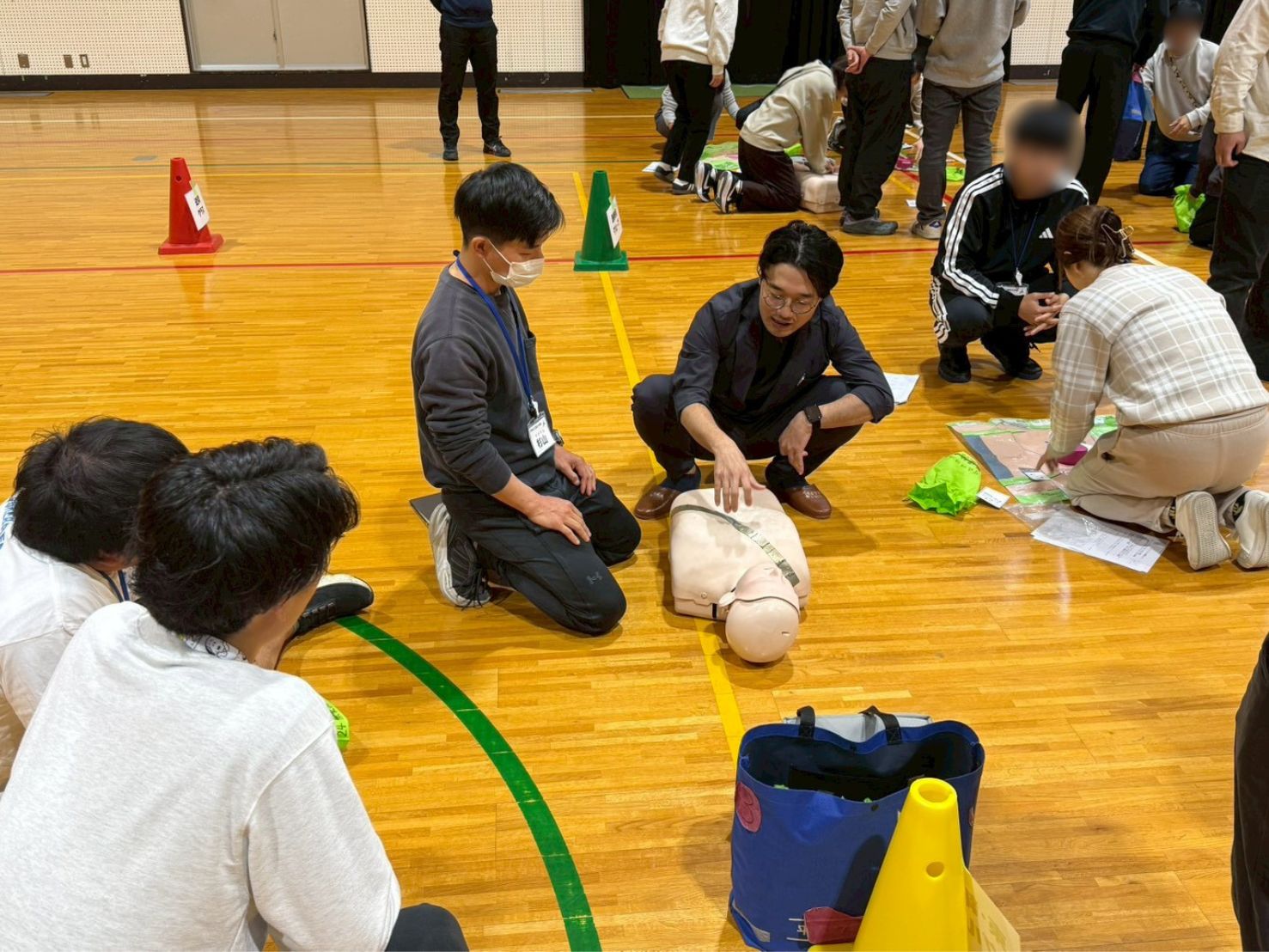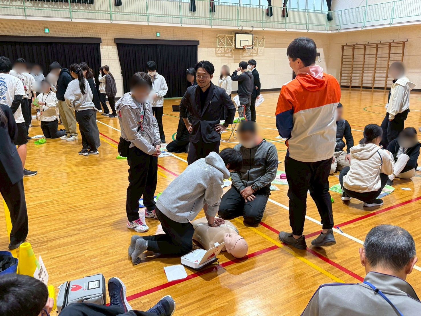 講演の後は、AEDデモ機や訓練用人形を使った実技練習を行いました。